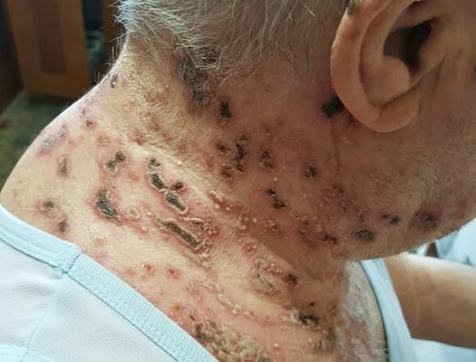 Over time, the blisters dry out and form crusts before healing.